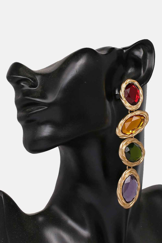 Geometrical Shape Zinc Alloy Frame Glass Dangle Earrings
