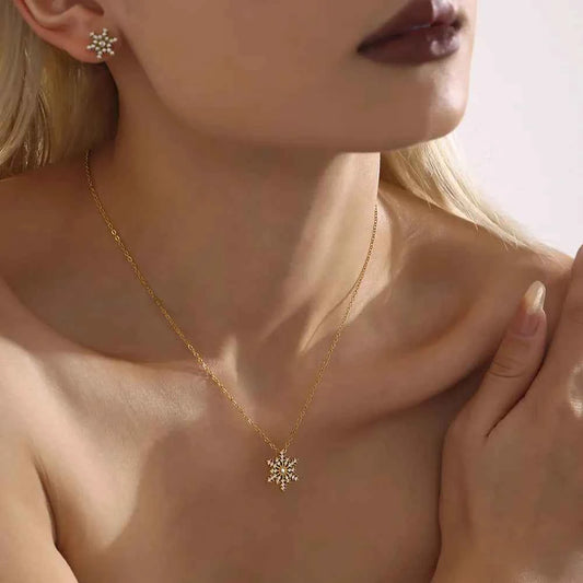 Stainless Steel Inland Zircon Snowflake Necklace