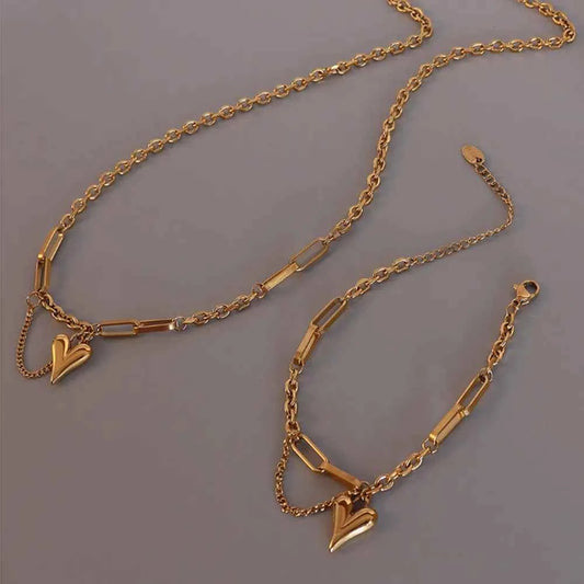 Titanium Steel Imitation Pearl Heart Pendant Necklace
