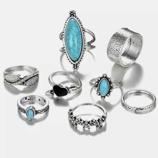 Turquoise Alloy 8-Piece Ring Set