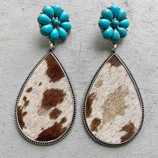 Turquoise Wooden Pumpkin Teardrop Earrings
