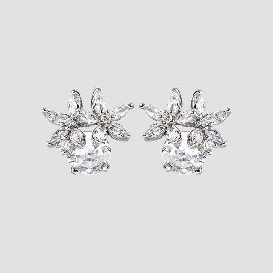 Zircon 925 Sterling Silver Flower Stud Earrings