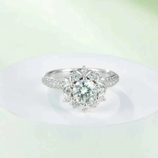 1 Carat Moissanite 925 Sterling Silver Flower Shape Ring
