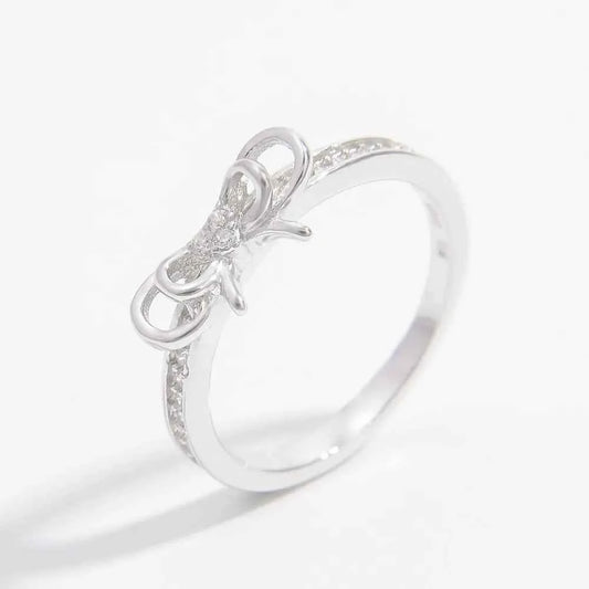 925 Sterling Silver Inlaid Zircon Bow Ring