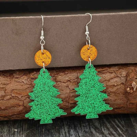 Glitter Acrylic Tree Shape Earrings