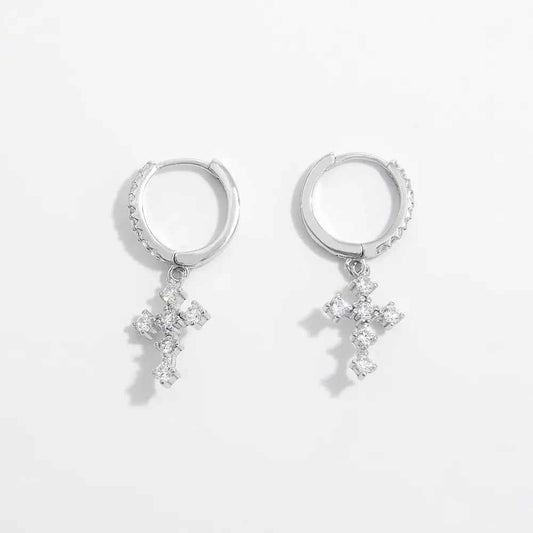 925 Sterling Silver Inlaid Zircon Cross Dangle Earrings