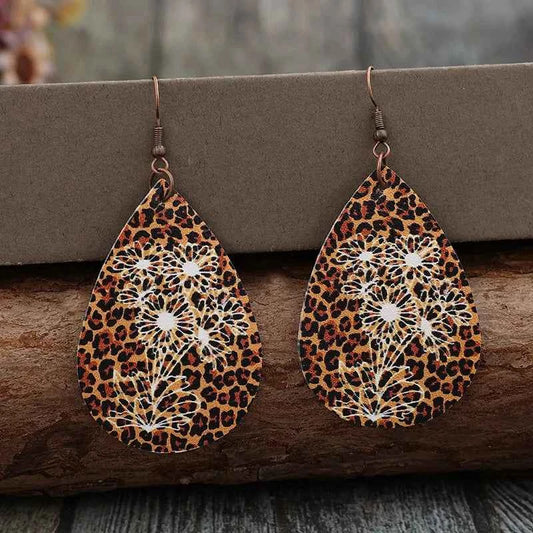 Leopard PU Leather Teardrop Shape Earrings