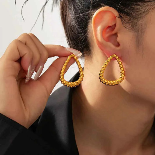 Stainless Steel Natural Tiger's Eye C-Hoop Earrings