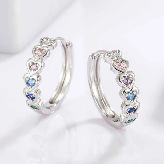 925 Sterling Silver Inlaid Zircon Heart Huggie Earrings