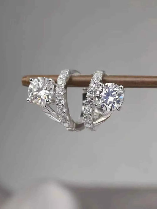 2 Carat Moissanite 925 Sterling Silver Huggie Earrings