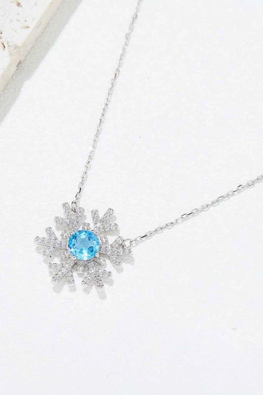 925 Sterling Silver Topaz Snowflake Shape Necklace