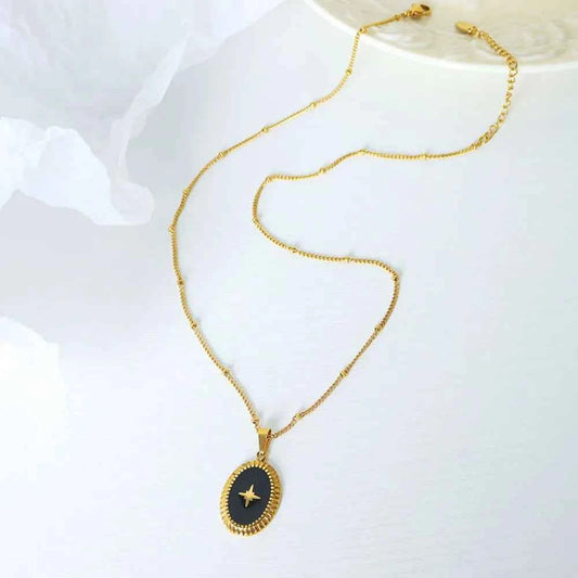 Gold-Plated Titanium Steel Oval Shape Pendant Necklace