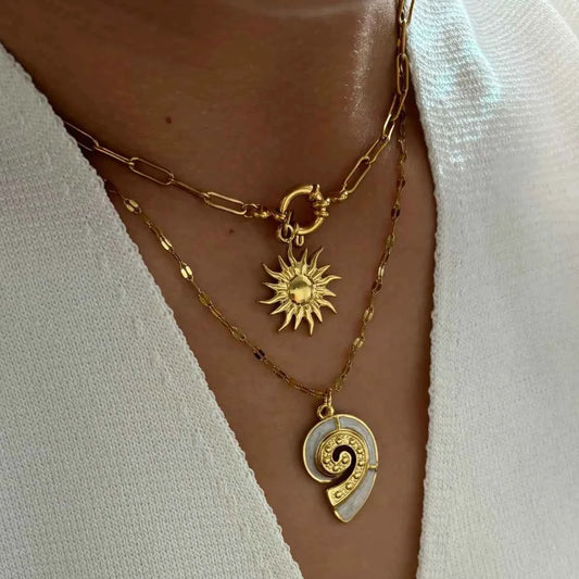 2-Piece 18K Gold-Plated Sun & Wave Pendant Necklace