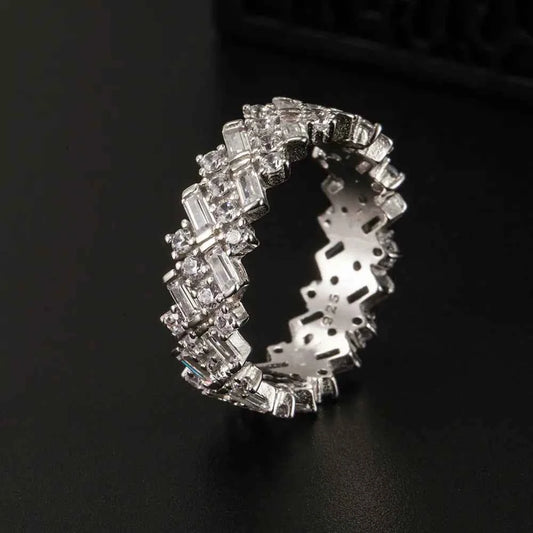 T Shape Inlaid Zircon 925 Sterling Silver Open Ring
