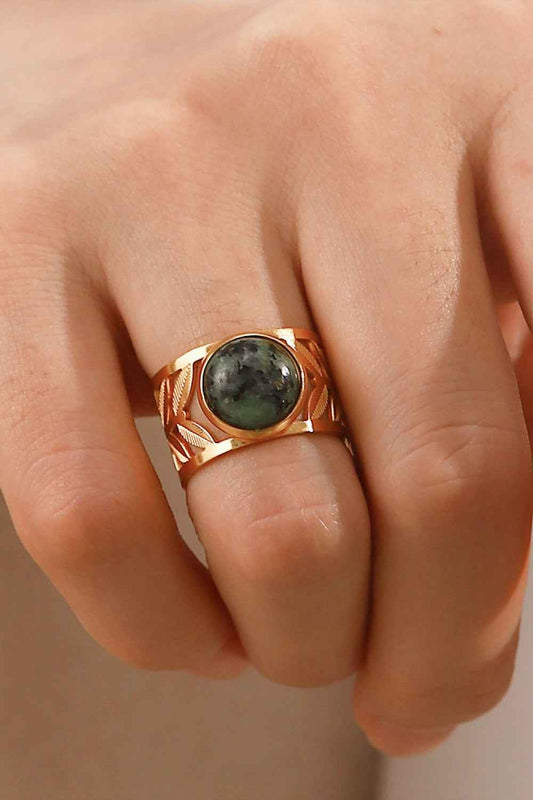 18k Gold Plated Malachite Leaf Ring