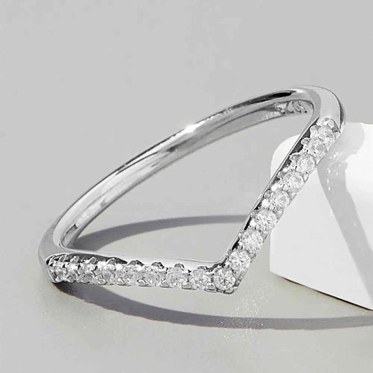 V Shape Inlaid Zircon 925 Sterling Silver Ring